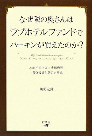 なぜ隣の奥さんはラブホテルファンドでバーキンが買えたのか? 価格: 1,260円 レビュー評価: 2.5 レビュー数:2 著者:嶋野宏見出版社:幻冬舎メディアコンサルティング/幻冬舎サイズ:単行本ページ数:189p発行年月:2009年06月この著者の新着メールを登録する【内容情報】(「BOOK」データベースより)ラブホテル業界の驚くべき実力。「高利益率」のラブホテルは最強の投資先だ。【目次】(「BOOK」データベースより)第1章 こんなに儲かるラブホビジネス(ガゼン注目、ラブホテルファンド!?/マンション経営の10倍? ほか)/第2章 なぜラブホテルは繁栄し続けるのか?(じつは米国よりヤバ気な日本経済/金はなくともHはやめない ほか)/第3章 ラブホ業界はいまが過 Supported by 楽天ウェブサービス |
